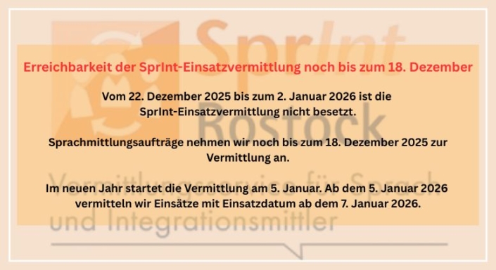 Erreichbarkeit der SprInt-Einsatzvermittlung noch bis zum 18.…