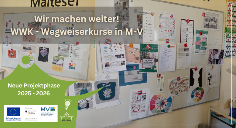 Seit dem 01.01.2025 wird das Projekt „WWK – Wegweiserkurse in M-V“ vom Asyl-, Migrations- und Integrationsfond (AMIF) gefördert. Die Kofinanzierung übernehmen der Bund (Bundesministerium des Innern und Heimat) sowie das Land (Ministerium für Soziales, Gesundheit und Sport M-V).