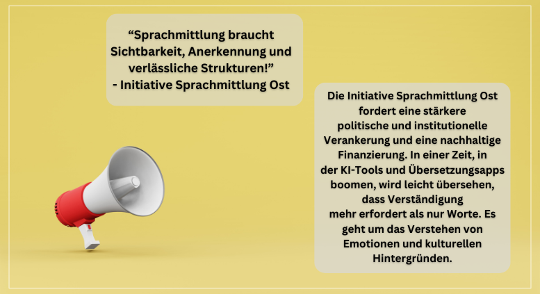 Rolle der Sprachmittlung in Präsenz hin. Die Initiative sendet ein